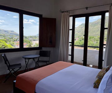Habitación con cama King o Queen para dos personas. Cada habitación está decorada de forma única y conserva la arquitectura colonial tradicional de la casa. Algunas habitaciones tienen balcones con vista a nuestro hermoso jardín y vistas al centro colonial de la ciudad.