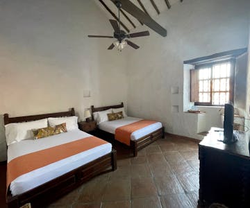 Room with two double beds or two queen beds. Each room is uniquely decorated, and kept with the traditional colonial architecture of the house. Some rooms have balconies overlooking our beautiful garden and views of the colonial town centre.